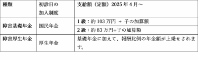 障害年金の2種類と支給額